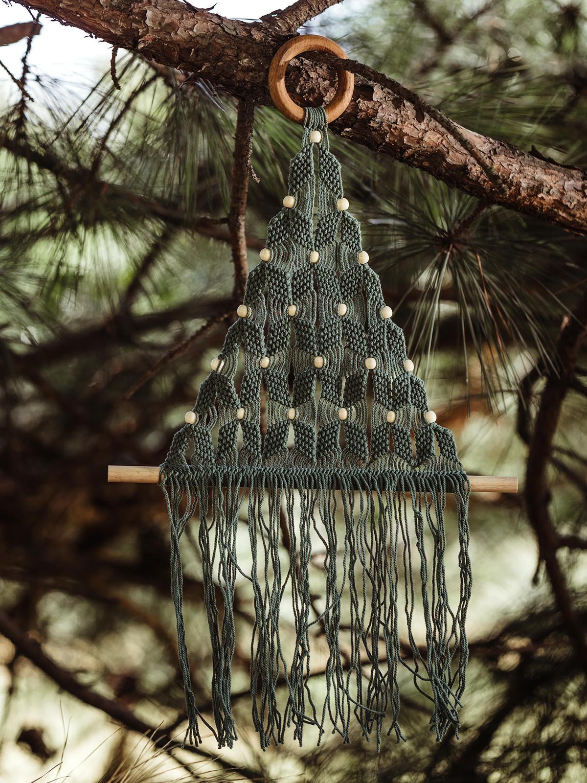 Introduce festive texture to your space with the Macrame Christmas Tree Wall Hanging from Thai Village. This beautifully handcrafted piece showcases a Christmas tree design created through intricate handwoven macrame knots. The natural. neutral tones enhance the sophistication of your room. while the detailed craftsmanship highlights the artisanal expertise of Thai makers. Ideal for infusing a modern. bohemian flair into your holiday decor. this wall hanging is both stylish and seasonal.
