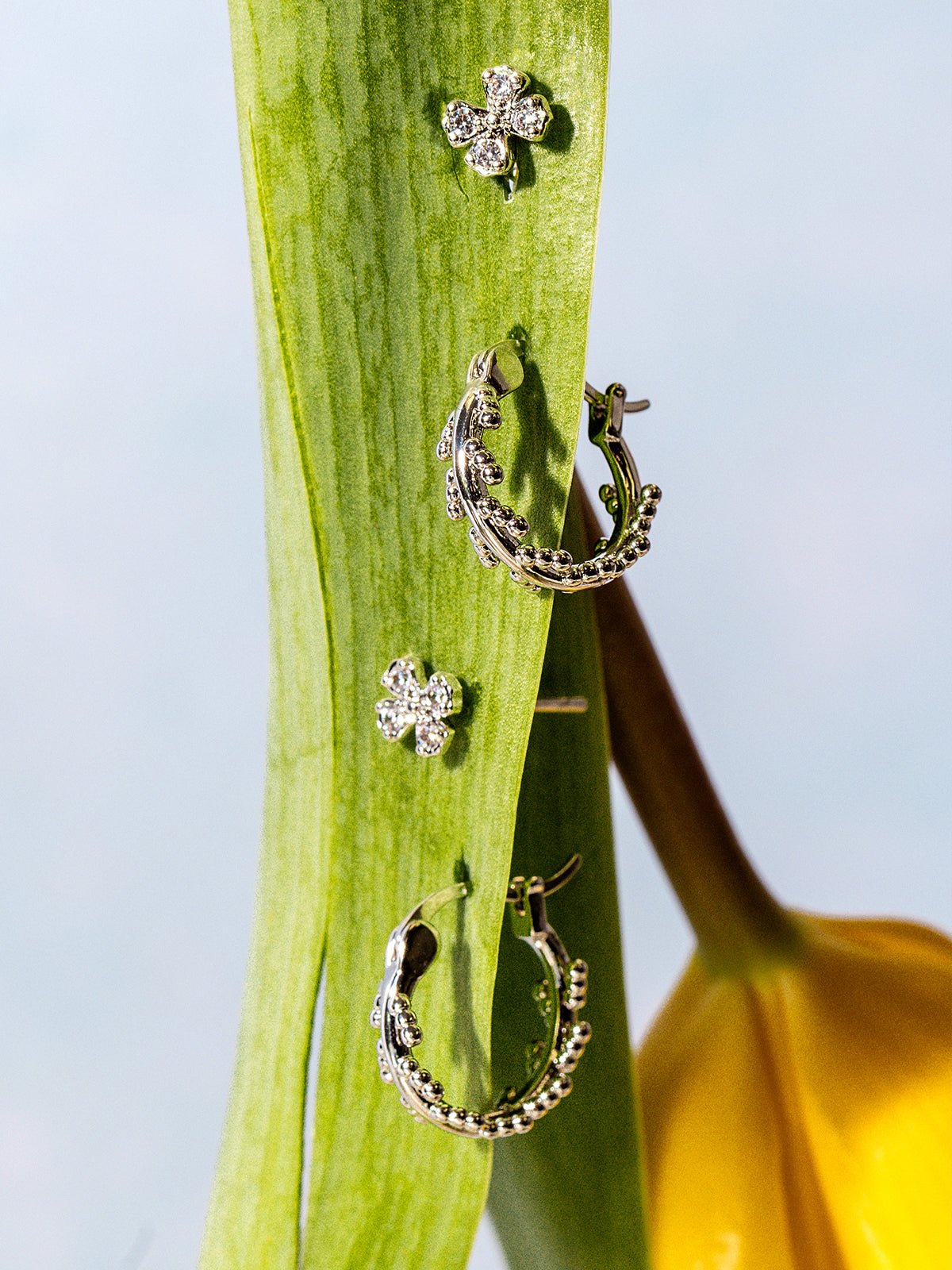 Inspired by the mustard plant. a symbol of strength. growth. and limitless potential. the Mustard Seed Earring Set offers two timeless styles. This set includes the Mustard Seed Hoop Earrings. featuring 0.5″ French lock-style hoops in white gold-plated brass with sterling silver hooks. and the Mustard Seed Post Earrings. adorned with pav?? cubic zirconia in a 0.23″ x 0.45″ design on 316 medical-grade stainless steel posts??a meaningful and elegant set designed to inspire.