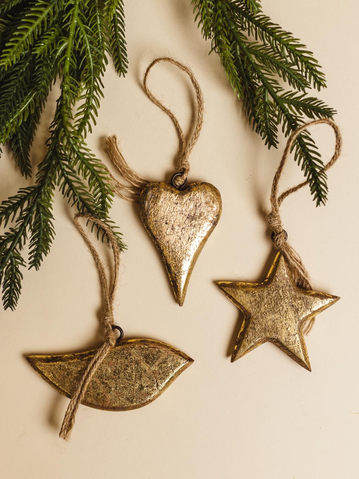 Tell a story of hope. empowerment. and love with your holiday d??cor with the Vaara Gold Ornament Set. This 3-piece set features handcrafted mango wood ornaments depicting a star. bird. and heart. all adorned with shimmering gold foil accents. These unique ornaments embrace the spirit of the season and are a meaningful gift.